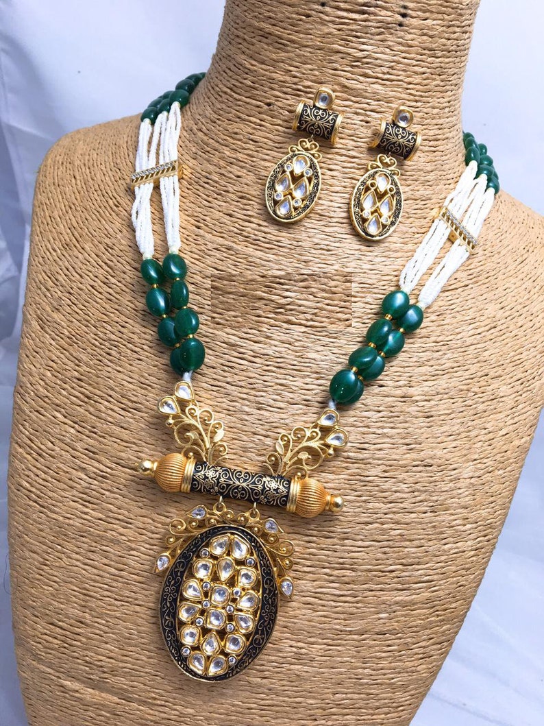 Kundan Indian Wedding Wear Pendant Necklace Set With Earrings Etsy